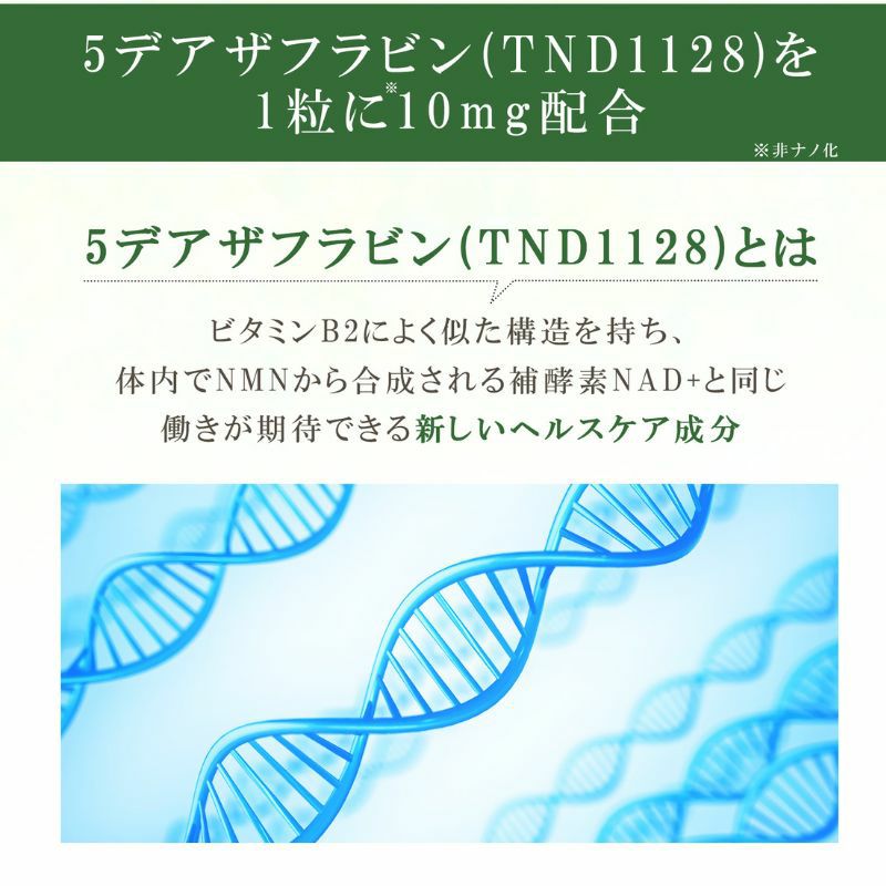 他の画像を見る 【5-デアザフラビン協会正規認定商品】 DEAZAPLUS 5デアザフラビン TND1128 plus NMN (30粒×1個) 通常価格 ¥ 11,000 のところ 会員限定特別価格 ¥ 9,900 税込 カートに入れる お気に入りに登録する